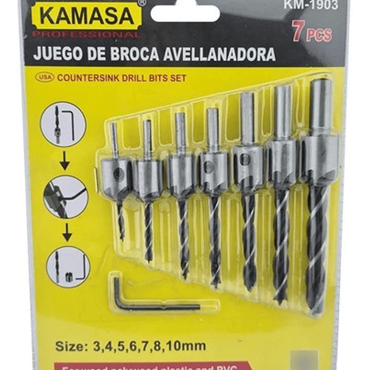 Brocas Avellanadoras Madera Plastico Pvc Punta Taladro 7 Pcs