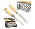 Set 12 Gubias Profesional Acero Mango Madera + Estuche Cuero